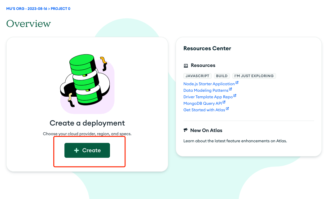 在注册并登录 MongoDB Atlas 后,您需要创建一个新的集群,以存储和管理您的数据。