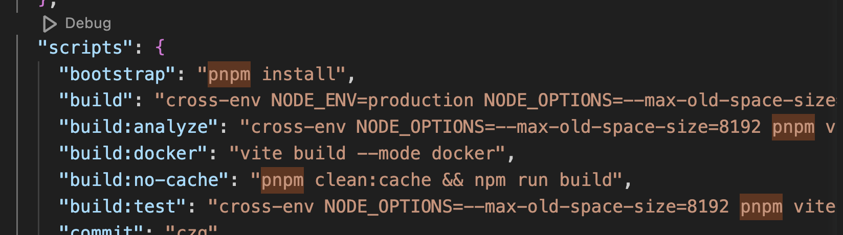 查看 package.json 的文件看 scripts,全部使用了 pnpm 的命令,所以我得先安装 pnpm。